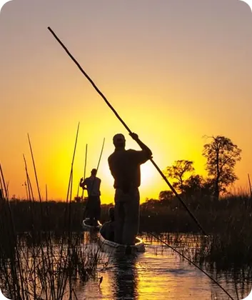 Glide silently through the shimmering floodplains of the Okavango Delta aboard a traditional mokoro (dugout canoe). Guided by a skilled poler, this serene water activity offers a peaceful connection with nature—no engines, no noise, just the gentle sound of water and birdsong. Nowhere else in Africa offers this unique and calming experience quite like Botswana.